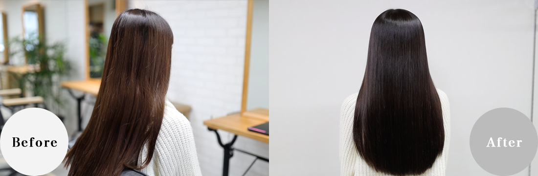 髪質改善トリートメントは、トレーニングを重ねた美容師がいるサロンだけが扱うことができるプロフェッショナルトリートメントです。カウセリングをもとに、お客様一人ひとりの髪質、なりたい質感に合わせてトリートメントを組み合わせることで理想の艶髪へと導きます。
